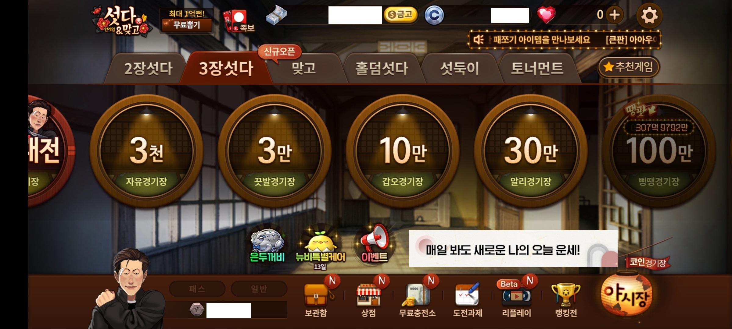 다음으로 이런 한게임 섯다 게임은 'PC'말고도 '모바일' 기기에서도 전용 앱을 통해 할 수가 있는데요. 이 앱은 안드로이드(바로가기), 아이폰(바로가기) 앱 스토어에서 '한게임 섯다&맞고'를 검색하면 받을 수 있습니다. 앱을 설치하고, 초기에 로그인을 한 다음에 닉네임을 적고 나면 이런 식에 기본 화면이 보이는데요. 여기서 본인이 들어가고 싶은 방을 선택하면, 게임을 진행하실 수 있을꺼에요. 이상 한게임 섯다 게임을 할 수 있는 두가지 방법에 대해 알아봤습니다.